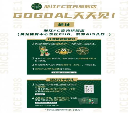 官方:浙江FC首家线下官方旗舰店明天正式开业