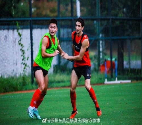 8月23日晚,中甲联赛第20轮苏州东吴队赛前新闻发布会召开,主教练金大仪携队员伊巴谦出席。