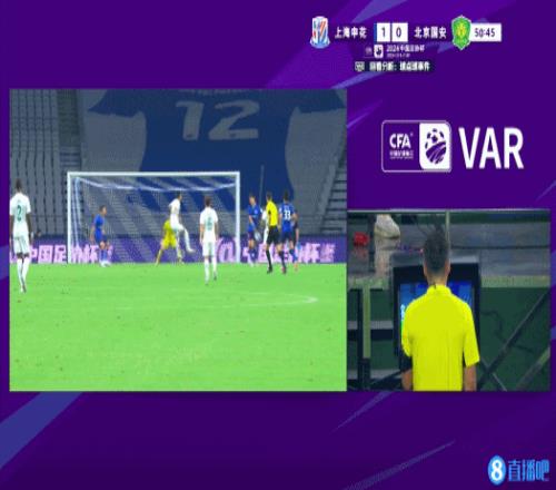 本场比赛第48分钟,国安进攻,张源传中,王子铭包抄打门被挡,二点球法比奥跟进即将打门,在蒋圣龙的拉拽下倒地,主裁判麦麦提江通过VAR认定法比奥手球在先,没有判罚点球。