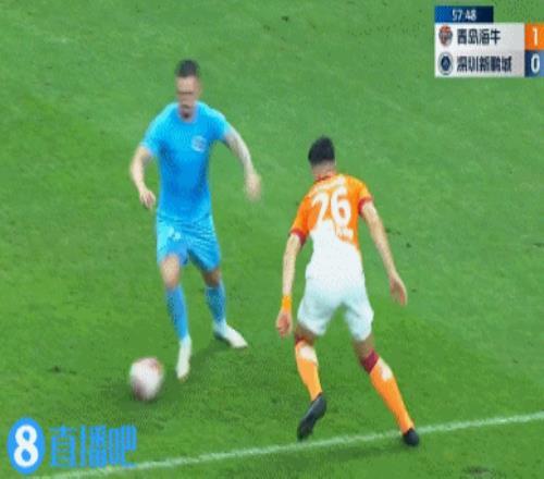 中超联赛第23轮,青岛海牛VS深圳新鹏城,比赛第58分钟,深圳新鹏城12号队员在带球突破过程中与青岛海牛26号队员腿部有接触并在对方罚球区内倒地。裁判员临场未判罚犯规,VAR未介入。