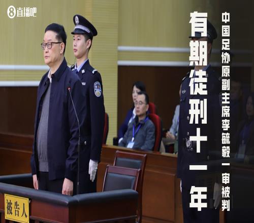 中国足协原副主席李毓毅一审被判11年,处罚金人民币一百万元