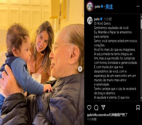 西尔维奥-桑托斯(Silvio Santos)是帕托的岳父,他于上周六去世,享年93岁。