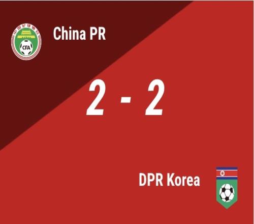比赛第52分钟,朝鲜队在中国队禁区前打出配合,7号球员得球后禁区内一步摆脱抽射得手,比分来到2-2;