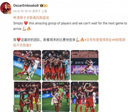 8月17日晚间,海港将在中超第23轮的上海德比客场对阵申花。对此,奥斯卡在社媒晒出了本赛季海港的多张照片并配文写道:“我❤️这最好的团队。盼着周末的比赛快些来