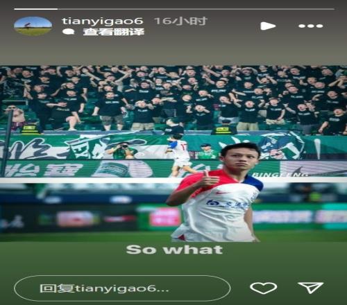 在个人社媒,高天意晒出他在工体谢场并朝着国安球迷竖大拇指的照片,并配文:那又怎样。从照片看,不少国安球迷向高天意竖中指。