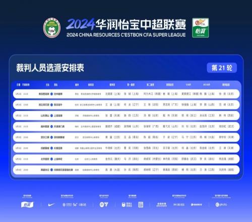 体育资讯8月2日报道宣称 中国足协公布了中超第21轮裁判人员选派名单,其中张雷执法泰山vs海港,金京元执法国安vs申花。
