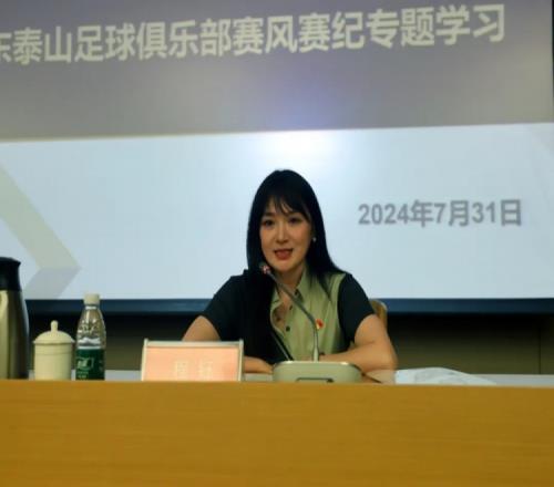 为贯彻落实国家体育总局、中国足球协会关于职业联赛赛风赛纪工作部署,7月31日下午,山东泰山足球俱乐部召开赛风赛纪专题学习会。山东省足管中心党总支副书记程钰、山东省足协技术部部长戴弋戈部长向与会人员进行了宣讲培训。