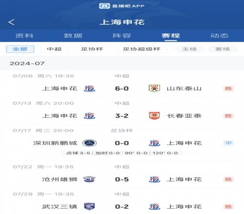 连战连捷!申花7月5场比赛全胜,进16球失2球