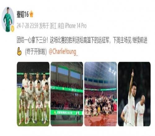 体育资讯7月29日报道宣称 中超联赛第20轮,成都蓉城客场3-1击败浙江队。赛后,蓉城门将蹇韬发文庆祝胜利。