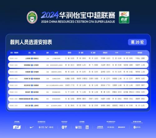 体育资讯7月26日报道宣称 中超官方公布第20轮裁判安排,马宁执法海牛对阵梅州客家,刘威执法河南队对阵泰山。