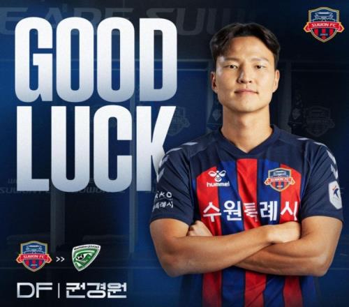 今年2月,权敬源从大阪钢巴加盟水原FC,为球队出战21场K1联赛打进1球。今天,水原FC官方宣布,权敬源加盟阿联酋豪尔费坎俱乐部。