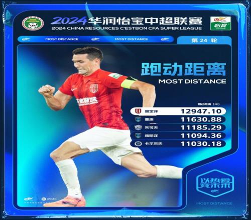 体育资讯7月23日报道宣称 联赛第24轮结束后,中超官方公布了这一轮的跑动距离榜,排在第一位的是成都蓉城队长周定洋,他的跑动距离是12947.10米。值得一提的是,周定洋已经连续三期登顶跑动榜榜首,是中超当之无愧的“跑男”。