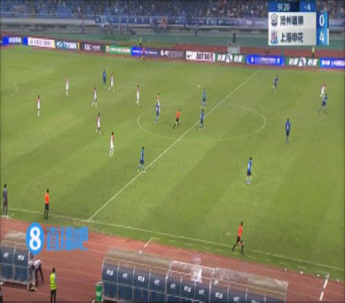 体育资讯07月22日报道宣称 中超第24轮,沧州雄狮vs上海申花,比赛进行到伤停补时期间,于汉超内切后助攻,谢鹏飞接球后右脚推射轻松破门,申花5-0领先