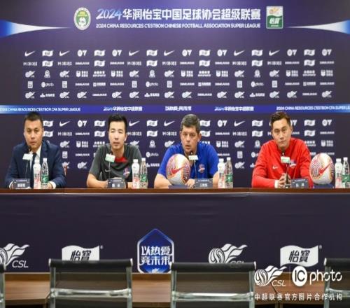 7月20日下午,在2024中国足球协会超级联赛梅州客家对阵青岛西海岸比赛赛前,主教练米兰携球员程月磊出席了赛前新闻发布会。