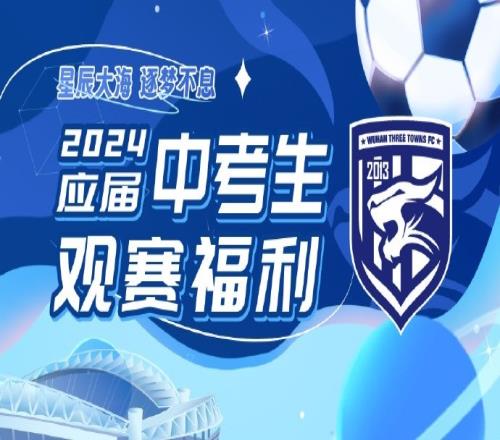 这个夏天,众多初三学子迎来毕业季,即将展开学习生涯的新篇章。武汉三镇足球俱乐部同样为本年度的中考生送上专属观赛福利,希望为你们的求学之路加油打气,也期待你们来到主场,为三镇队送上呐喊与助威!