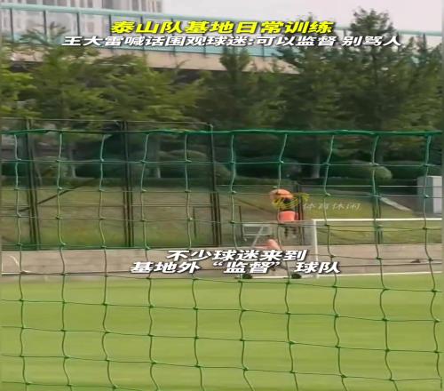 体育资讯7月10日报道宣称 中超联赛第18轮,山东泰山客场0-6惨败上海申花。昨天,泰山队在基地内正常训练。据《闪电体育》报道,不少球迷来到基地外“监督”球队。