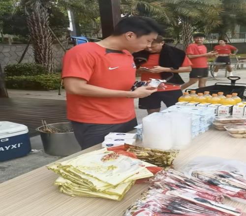 视频当中,梅州客家全队来到一处度假村进行团建,大家吃着各种美食,还在泳池里避暑休憩。尹鸿博配文写道:“大战前的团建,暂时卸下压力。兄弟们凝心聚力,准备好周末的决战。三个字,拼到底!梅州客家,加油!”