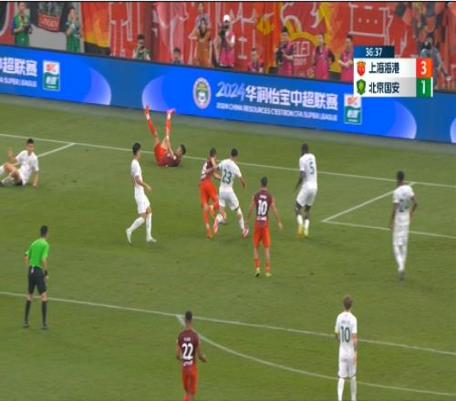 体育资讯7月12日报道宣称 中超第19轮,上海海港vs北京国安。比赛第37分钟,奇塔迪尼突入禁区被李可放倒,裁判第一时间示意没有点球。