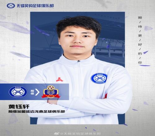 球员黄钰轩租借加盟延边龙鼎。经过与球员本人及延边龙鼎足球俱乐部友好协商并达成一致,球员黄钰轩即日起租借前往延边龙鼎足球俱乐部,租借期至本赛季结束。