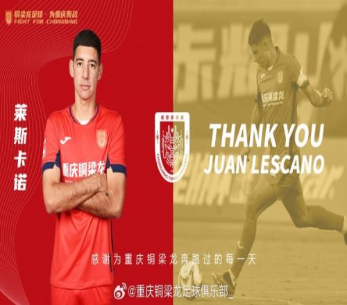 重庆铜梁龙俱乐部官方公告:按照中甲联赛外援人数注册要求,即日起撤销阿根廷球员莱斯卡诺的联赛报名,在此感谢他为球队在联赛上半程做出的贡献。
