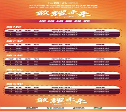 2024年中国足球协会女子甲级联赛赛程表争冠组和保级组