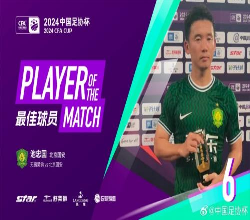 赛后,北京国安6号球员池忠国获得本场比赛最佳球员。