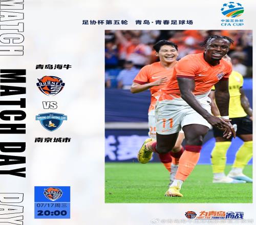 体育资讯07月17日报道宣称 北京时间今晚20:00,足协杯1/8决赛,青岛海牛vs南京城市,赛前双方首发出炉。