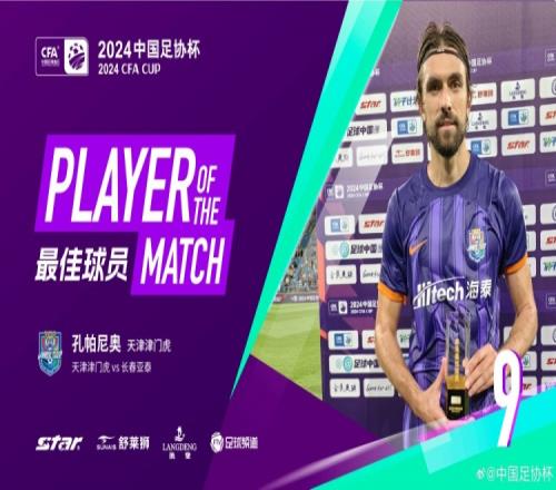 体育资讯7月17日报道宣称 在足协杯1/8决赛中,天津津门虎主场4-3险胜长春亚泰,外援孔帕尼奥梅开二度。比赛结束后,足协杯赛事官方将本场最佳球员的奖项授予津门虎外援孔帕尼奥。