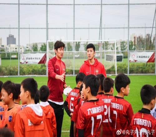 体育资讯11月9日报道宣称 记者陈华报道,上海海港今日在浦东足球场外场举行“海港校园行”活动。教练于海和队员李圣龙、刘祝润等人参加。