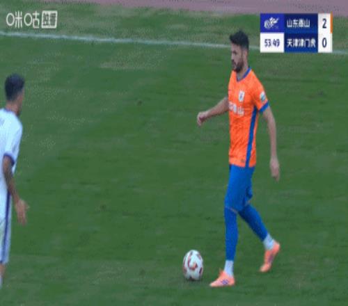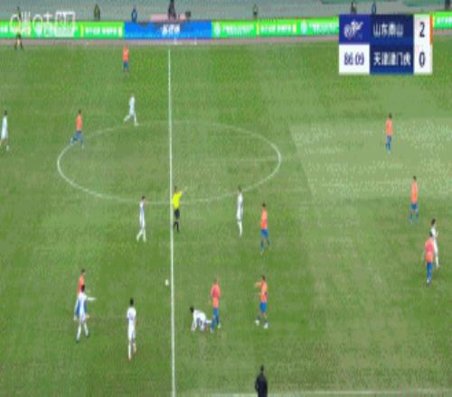不过,在被罚下一人后,津门虎却马上收获进球。基莱斯在禁区内反复变线后,躲过对手三人包夹,起左脚施射完成破门,将比分改写为1比2。