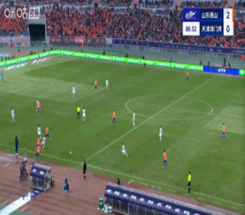 第88分钟,基莱斯利用个人能力连续扣过多名泰山球员之后射门得手,津门虎扳回一球,1-2!
