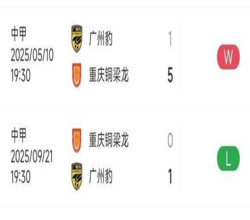 目前,铜梁龙和广州豹的积分同为57分,甚至连胜负场、净胜球等数据都全部一样。只是因为在双方胜负关系上,铜梁龙的净胜球占优而暂时排名第二。