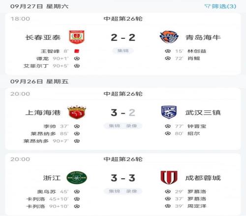 如此中超蓉城100分钟遭绝平海港98分钟绝杀亚泰95分钟绝平海牛