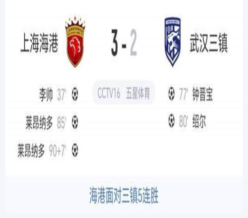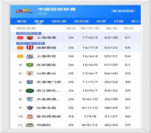 卫冕冠军上海海港57分重夺榜首宝座;