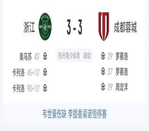 上一场绝平申花,这一场被浙江绝平。