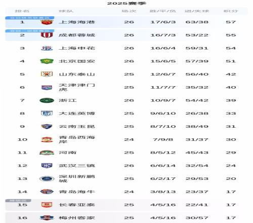 中超争冠形势巨变!蓉城连丢3球遭绝平+丢榜首海港绝杀后2分领跑