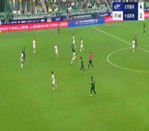 全场比赛补时第6分钟,方昊右路得球突破后横传禁区,林良铭拿球摆脱射门高出。全场比赛补时7分钟后结束,北京国安4比2击败大连英博结束3连败。