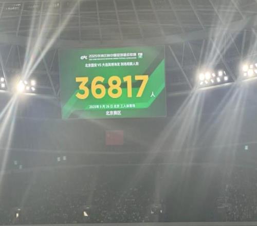 北京时间9月26日,中超第26轮,北京国安4-2大连英博。现场大屏显示,本场比赛的观众只有36817人,创下本赛季工体中超比赛上座率最低值。
