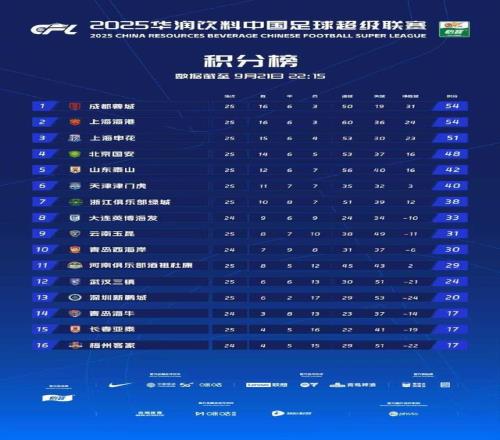 至此,成都蓉城和上海海港积分54分,不管是胜负关系还是净胜球,成都蓉城都压住了上海海港,由此成都蓉城继续领跑积分榜。上海申花在错失胜利之后,积分只有51分,落后成都蓉城和上海海港3分。48分的北京国安和前面球队已经拉开了差距。