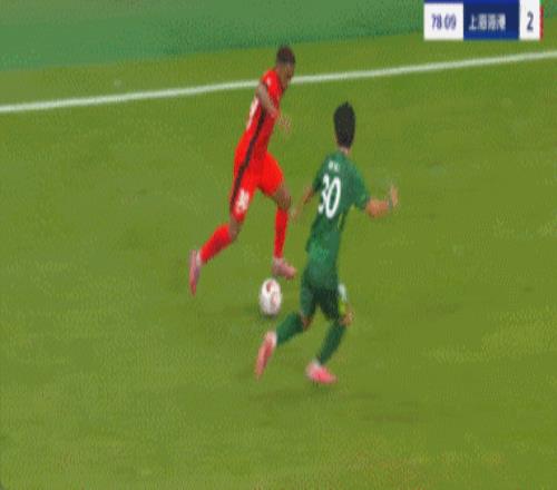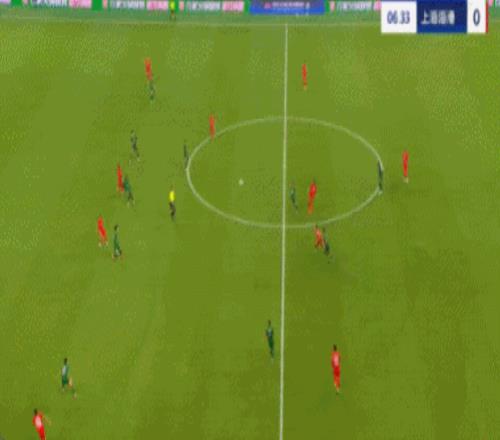 比赛补时阶段,申花队获得3打2的绝佳机会!高速插上的于汉超体能不支,射门偏出球门,申花队错失2-0杀死比赛的绝佳机会!