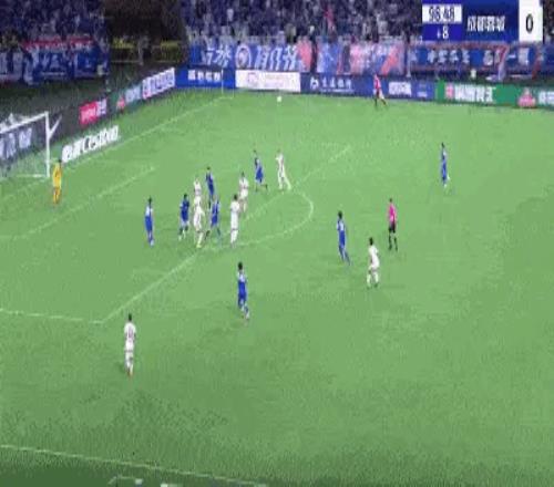 第90+9分钟,蓉城队后场大脚传到禁区,造成申花队防线一片混乱!周定洋抓住机会补射破门,蓉城队1-1绝平申花队!
