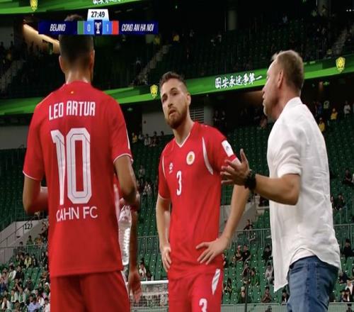 第15分钟,河内边路一次过顶球,直接打穿了国安的防线,倒三角回传后,莱奥阿图尔劲射被防守球员挡出,紧接着维托禁区线上轰出一脚漂亮的世界波,直接破门得分,0:1!国安意外落后了!