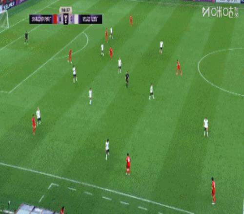 第57分钟,海港左路45度斜长传右侧禁区角,头球摆渡到禁区内,李圣龙左脚打门被前川黛也再次扑出↓