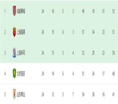 目前,前面24轮中超战罢,成都蓉城的战绩非常高光,16胜5平3负积53分,一举反超上海申花、上海海港两大豪门抢占了中超榜首之位,比第二名上海海港多出2个积分,比第三名上海申花多出3分,在中超还剩最后6轮的情况下,成都蓉城问鼎本赛季中超冠军的希望已经越来越大。