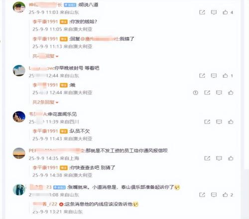 就在这个关键时刻,自媒体李平康又一次的站了出来,拿着模棱两可的泰山员工工资说事。一会说“俱乐部员工和足校有一段时不发工资了”,一会又说“打国安之前,文旅给球员提士气的时候提到了李平康”,李平康还真把自己当个人物了。