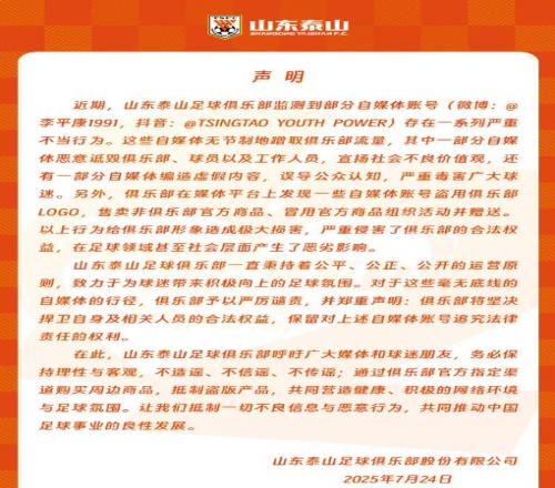 好在,球迷更多的不相信李平康的爆料。毕竟,山东泰山此前就专门出了一份针对李平康的声明。只不过,李平康似乎不把山东泰山的警告放在眼里。