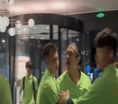 超大比分输球,跟随北京国安远征的很多球迷难以接受这个事实,部分球迷堵在酒店大堂,等到自家球员回酒店的时候,高声质问他们的表现。当时一众国安将士已经走到电梯口,队长王刚情绪激动地冲了出来,与球迷们怒怼,随后张玉宁也拨开围堵他的众人冲到那群球迷面前去理论。