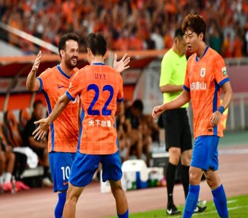 第21分钟,马德鲁加在禁区外尝试一脚远射,踢得有点正。门将倒地把球没收。第22分钟,山东泰山再次进球,依然是卡扎伊什维利的进球!他突入禁区,晃开防守球员,起脚挑射!皮球划出一道漂亮的弧线钻入球门!卡扎伊什维利梅开二度!第27分钟,卡扎伊什维利内切远射,被扑了出去。