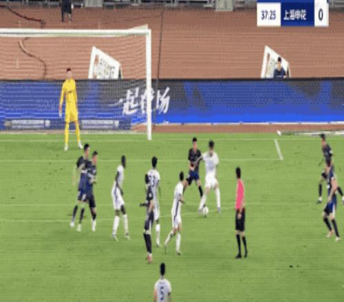 第2分钟,申花获得前场任意球,朱辰杰后点头球摆渡,阿苏埃门前抢点,近距离将球打进,裁判立即举旗。