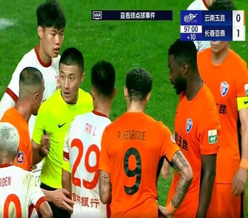 下半场易边再战,玉昆攻势如潮,亚泰外援卡米洛受伤,球队用人更加捉襟见肘,只能立足守住1-0,而玉昆换上外援约尼查加强进攻,艾菲尔丁和边裁发生口角染黄。尽管亚泰收缩防线扎紧篱笆,但有反击机会也很坚决,第80分钟艾菲尔丁爆射打在横梁上,同时被吹手球。回过头来,约尼查任意球也打在立柱上险些扳平。决胜时刻,云南玉昆全线压上。伤停补时阶段,内内和谭龙肢体接触禁区内倒地,主裁判傅明指向12码,奥斯卡一蹴而就,云南玉昆第98分钟完成绝平。最终,比赛以1-1结束。